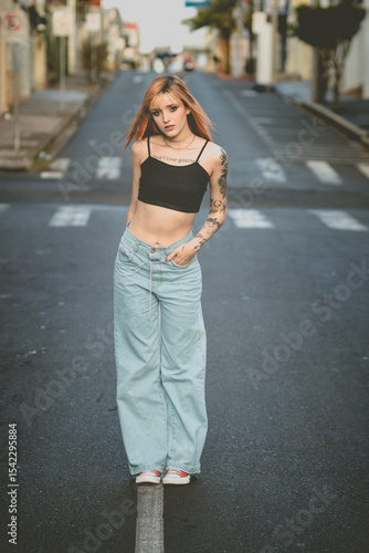 young woman walking on the street
