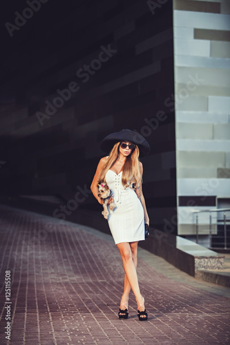 fashion, woman, fashionable, gorgeous, street, model, town, goggles, sunglasses, attractive, emotional, clothes, white, business, hat, walking, summer, full, casual attire, people, caucasian, female, portrait, dog, elegant, modern, lady, lifestyle, young, girl, eyewear, optic, pleasure, city, person, businesswoman, beauty, joyful, hair, stylish, style, beautiful, length, pretty, coiffure, happy, sexy