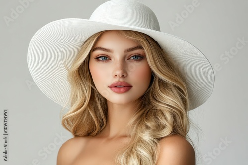 woman, blond, hat, beauty, portrait, fashion, elegance, model, make-up, coiffure, accessory, light, background, natural, chic, style, confidence, grace, youthful, serene, trendy, glamourous, relaxed, vibrant, expression, cosmetic, hair, studio, aesthetic, casual attire, allure, icon, feminine, posed, sunny, radiant, soft, tone, captivating, sophistication, head shot, stunning, visual, art, striking, appealing, personal, branding, portraiture