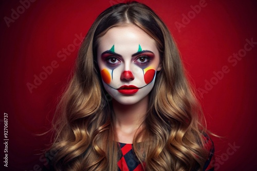 Young woman with clownish carnival make-up