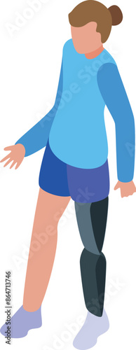 prosthetic, leg, woman, walking, activewear, health care, rehabilitation, sport, athlete, active, lifestyle, disability, limb, amputation, recovery, strength, determination, confidence, independence, inspiration, overcoming, challenge, physical, therapy, medicals, technology, bionic, artificial, body, human, female, young, adult, casual attire, modern, isometric, icon, illustration, three-dimensional, isolated, white, background, people, person, 1, full, length, standing, side