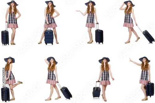 composite, collage, set, montage, collection, compilation, variation, isolated, white, background, various, pose, aerodrome, redhead, bag, baggage, beach, beautiful, beauty, business, case, clothing, fashion, female, fun, girl, happy, hat, holiday, journey, baggage, modern, packing, panama, fashionable, glamourous, standing, suitcase, summer, teenage, tour tourism, holiday maker, travel, traveler, trip, trunk, vacation, voyage, woman, blue
