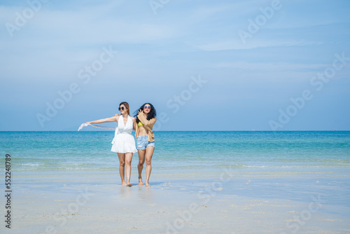 Young women with friends enjoying on the beach,Happiness woman on beach.