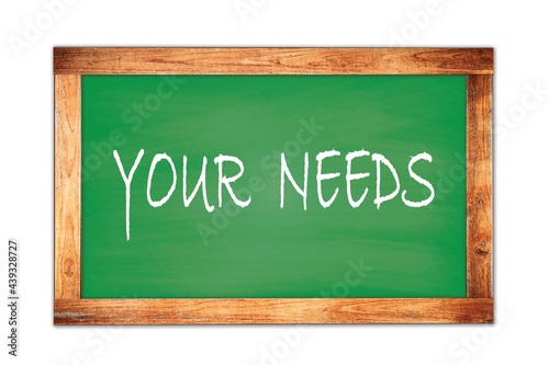 YOUR NEEDS text written on green school board.