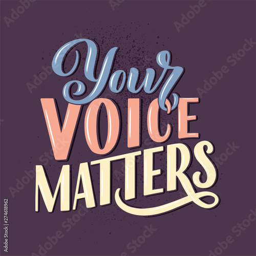 Your voice matters quote lettering. Calligraphy inspiration graphic design typography element. Hand written postcard. Cute simple sign hand drawn style. Textile print