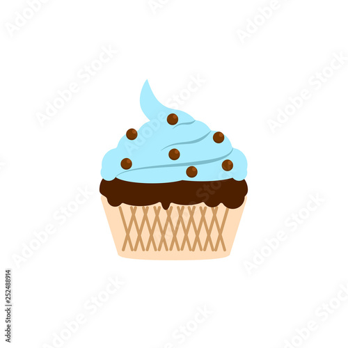 Yummy cake, muffin isolated on white background. Colorful sweet homemade bakery with cherry, chocolate. Tasty cupcake. Party, celebration concept. Vector flat design