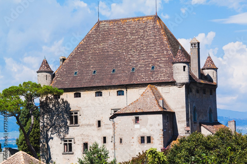 france, castle, geneva, lake, mediaeval, old, french, built, landmark, lac, stone, architecture, ancient, europa, european, historic, leman, wall, blue, village, beautiful, sky, travel, history, historical, water, tree