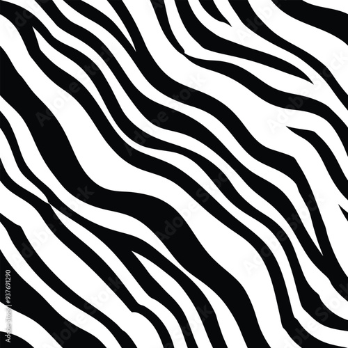 Zebra skin background seamless vector pattern featuring black and white animal print design, perfect for fabric, fashion, and textile applications with a bold and stylish look