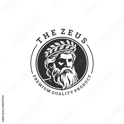 Zeus logo with vintage divine power, symbolizing strength, authority, and timeless mythology.