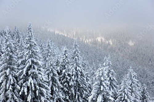 Zimowy krajobraz ze świerkami