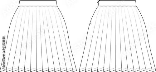 skirt, technical, drawing, flat, vignetting, cad, model, design, vector, fashion, woman, template, mini, short, pleated, pleat, fit, zip, zip, casual attire, modern, formal, classic, technical drawing, outline, garment, collection, textile, fashionable, silhouette, illustration, clothing, isolated, wear
