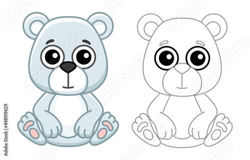 Zoo animal for children coloring book. Funny polar bear in a cartoon style. Trace the dots and color the picture