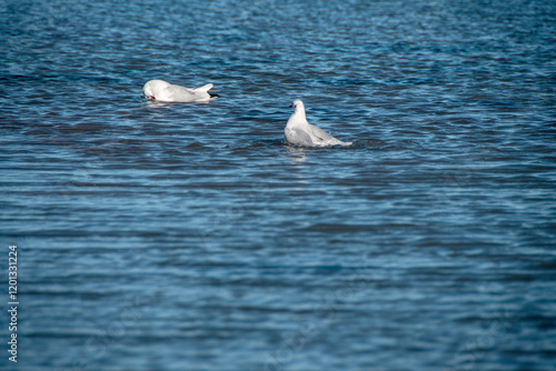 Zwei Lachmöwen (Larus ridibundus) beim baden