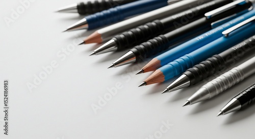 シャープペンシル多数 並ぶ 静かな光 美しい質感. AI Generated