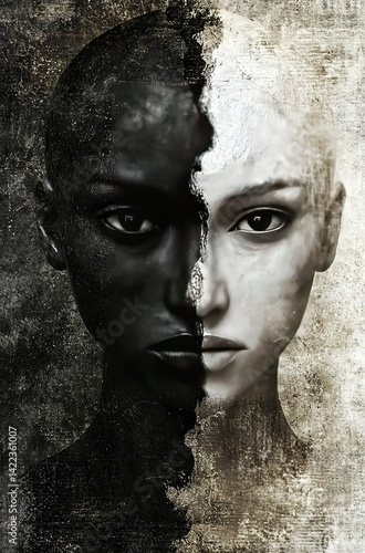 face, woman, black, statue, eye, people, model, beauty, closeup, sad, look, art, person, head, hair, sculpture, horror, body