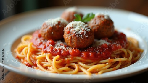 masterpiece, beauty, beautiful, spaghetti, meatball, food photography, italian cuisine, detail, texture, pasta, culinary