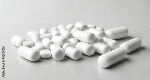 A collection of white capsules on a surface