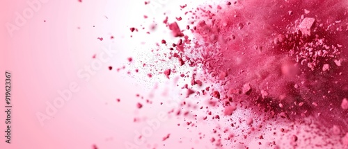 A pink background with an ample scattering of small pink powder particles at the bottom, and a modest deposit of similar hue at the base