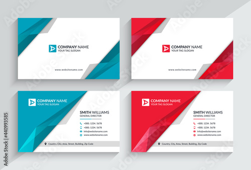 Abstract Corporate Business Cards. This Name Card Comes In Two Different Color Versions (Red & Blue) - Corporate Identity Template.