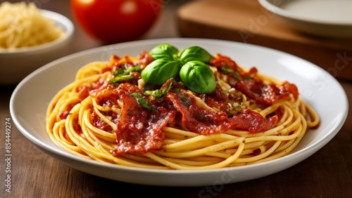 dinner, spaghetti, inviting, food photography, savoury, table setting, appetising, home cooking, wholesome, basil, meal, plate, italian cuisine, accessing, hearty, delicious, culinary, meat, mouth-watering