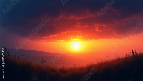 Dramatic Sunset Sky with Warm Vibrant Colors and Silhouetted Landscape