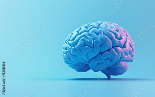 ed image of a human brain with blue and pink lighting against a gradient blue background, symbolizing brain activity and science.