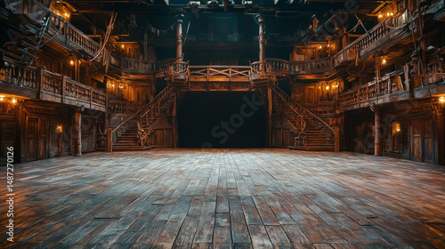 Empty pirate ship deck background designed for a theater stage scene.