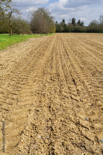 view, farmhouse, ploughed, field, farm, farmland, agriculture, cold, nature, country, countryside, rural, life, house, house, home, home, property, property, housing, real estate, land, earth, dirtied, fallow, grooved, furrow, deep, shadow, line, line, pattern, vanishing point, season, meadow, horizon, ranch, sky, cloudscape, cloud, planting, lush, viewpoint
