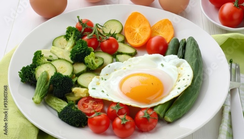 Fresh and vibrant breakfast plate with eggs and vegetables