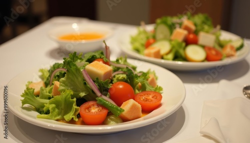 cucumber, healthy, presentation, bowl, dish, food, cheese, dining, salad, dressing, lunch, table, eatery, fresh, vegetable, meal, tomatoes, lettuce