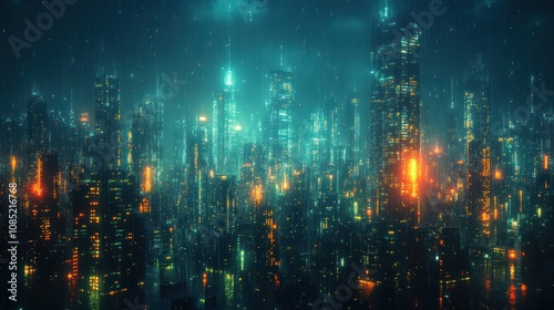 city, futuristic, night, skyline, neon, light, building, skyscraper, urban, technology, glow, metropolis, city landscape, modern, architecture, digital, abstract, illumination, electric, energy, bright, dark, fantasy, science, fiction, vibrant, colours, scene, illustration, graphic, design, background, wallpaper, texture, pattern, gleam, shine, sparkle, shimmer, aglow, radiant, ambient, atmosphere, horizon, future, progress