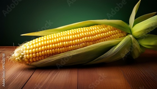 とてもシンプルなトウモロコシ、木の机、程よいグラデーション、スタイリッシュな雰囲気 Generated by AI