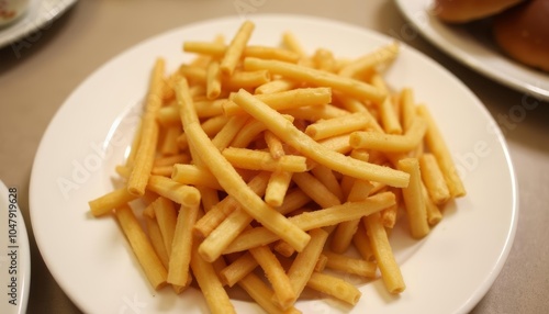 Goldenbrown crispy fries on a white plate ready to be savored