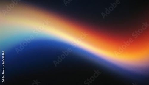 Grainy noisy poster background, dark blue orange red color wave black backdrop abstract head