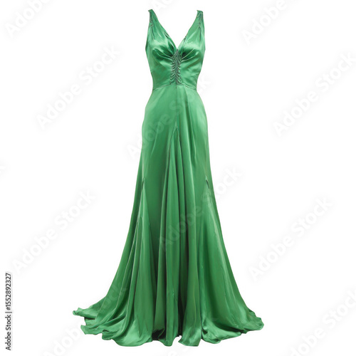 isolated green silk evening dress white and transparent background.