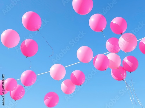 Pink Balloon Decoration Floating Against a Clear Blue Sky for a Festive Celebration