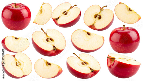 Red Apple Collection Whole, Halved, and Sliced Views from Side and Top, Transparent PNG