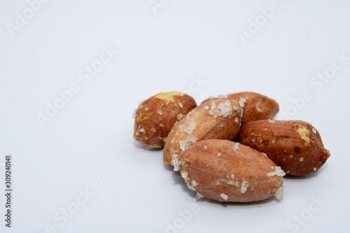 salted peanuts on a white background