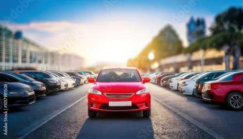 Small city cars fleet. A red car in front. Choosing new car concept.