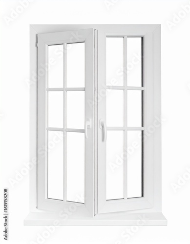 Ventana Blanca Moderna con Marcos Cuadriculados Aislada