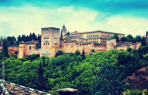 view of Nazaries palaces of Alhambra. Granada