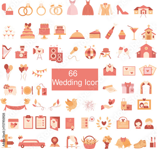 wedding icon set - Editable stroke illustration. Color web icons bundle. vector illustration.