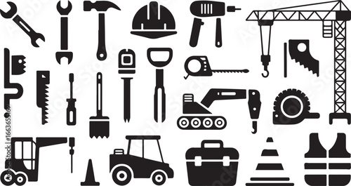 icon, vector, set, silhouette, tool, tool, illustration, icon, hammer, symbol, construction, equipment, music, instrument, collection, screwdriver, saw, wrench, design, repair, drill, signs, black, scissors, spanner