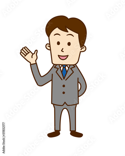 youth, young, employee, speaking, illustrate, smile, happy, fun, refer, introduce, pointing, exposition, smile, young, 30s, student, man, working man, businessman, suit, work, salaried employee, newcomer, job hunting, illustration, vector, sweet, people, japanese