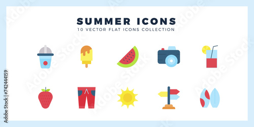 10 Summer Flat icon pack. vector illustration.