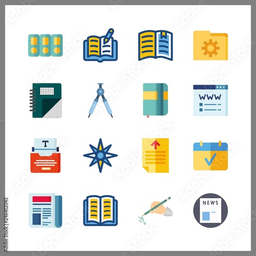 16 page icon. Vector illustration page set. newspaper and windrose icons for page works