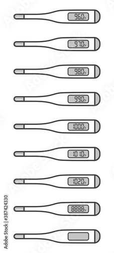 thermometer, contact, temperature, temperature, measurement, measurement, measure, inspection, fahrenheit, digital, health, medical care, set, material, illustration, vector