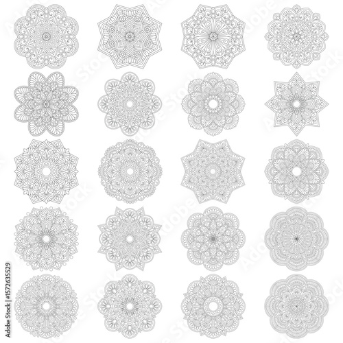 20 Geometric Mandala Bundle for coloring book pages, vector Illustration