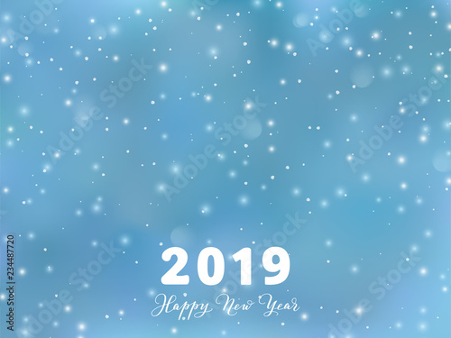 2019, new year, christmas, vector, background, banner, holiday, magic, winter, illustration, design, season, element, text, word, letter, font, card, calligraphy, phrase, typography, flier, happy, white, blue, snow, snowfall, snowflake, flake, falling, abstract, sky, day, light, texture, effect, bokeh, blur, type, decoration, calendar, number, logotype