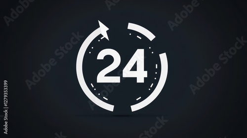 24/7 Availability: Modern Minimalist Graphic Design of a 24 Hour Clock Representing Constant Service and Support.